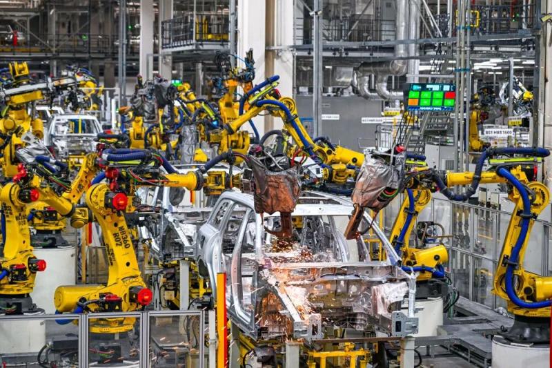 2025年9月19日在位于重庆市两江新区的赛力斯汽车超级工厂拍摄的自动化生产作业现场(无人机照片)。新华社记者 王全超 摄