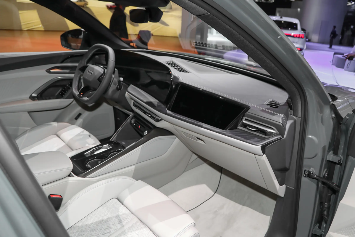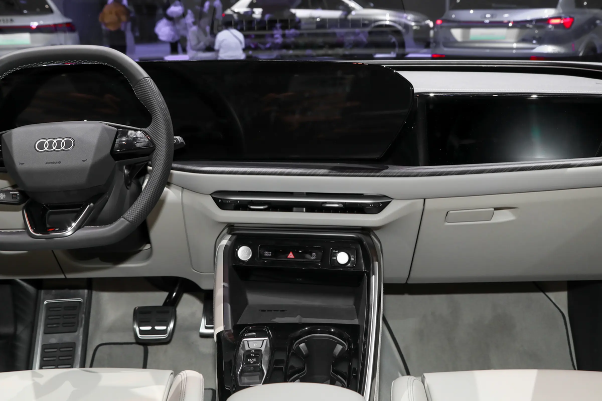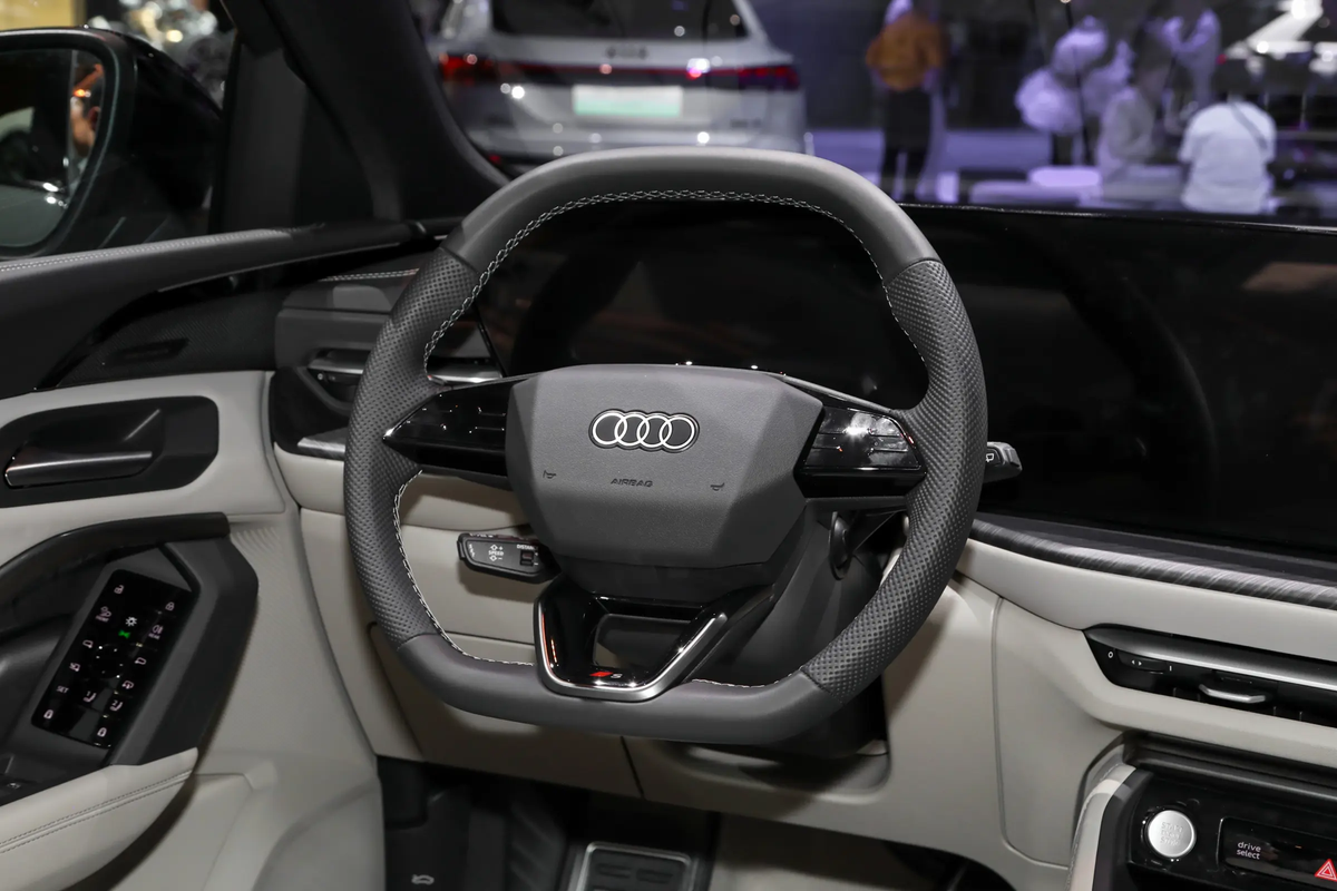 内饰方面,奥迪Q5L目前还没有明显的舱内调整。在带有触控的平底三辐式方向盘前端,车辆依旧采用了一体式曲面结构打造的11.9+14.5英寸双液晶屏,这种OLED曲面屏能够更集中地展示实时车况与路况信息,并优化中控位置的触控操作便捷度。同时,车辆还会增加HUD抬头显示来优化信息读取,更直观地读取方式也能在一定程度上避免因视野偏转导致的安全风险。不过,奥迪的HUD在实用性方面稍有欠缺,它无法像国内的那些AR-HUD那样提供多全面的实时路况导航提示,而仅仅是作为辅助读数显示。
